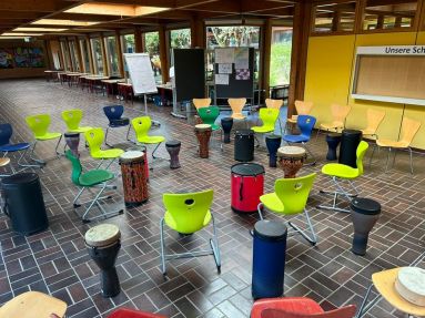 Heute konnte endlich wieder ein Einführungsworkshop zur Drumcircle Methode nach Arthur Hull stattfinden. In den Räumlichkeiten der Salier Gemeinschaftsschule in Waiblingen brachte Ben Flohr von GEWA music den Teilnehmern die Grundzüge eines #comunitydrumcircle nach Arthur Hull bei.